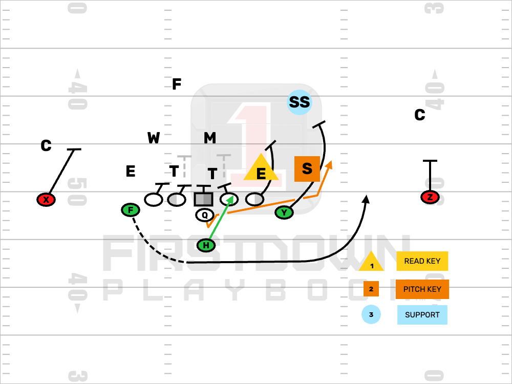 -TRIPLE OPTION PLAY RUN OFF OF THE INSIDE VEER TO THE FULLBACK.