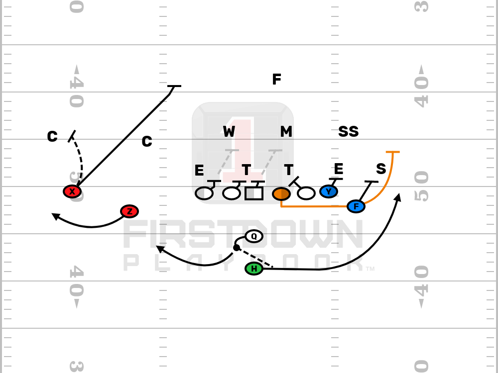 SWEEP RUN TO THE TWO TIGHT END (FLANK) SIDE.