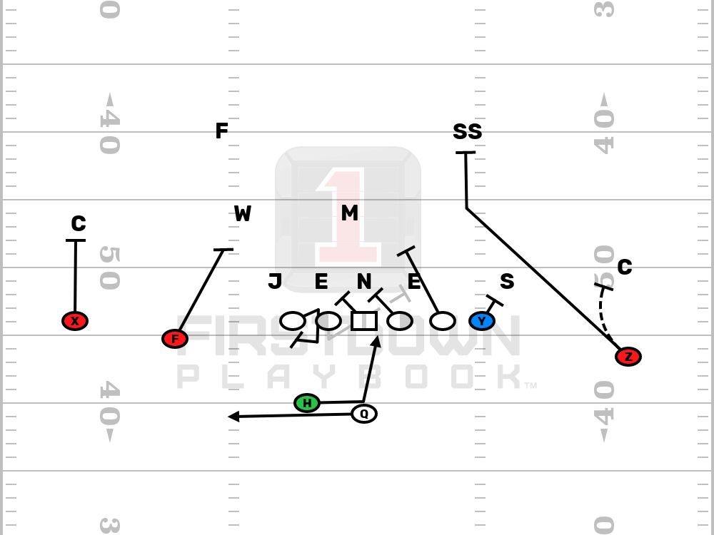 -PLAY DESIGNED TO TAKE ADVANTAGE OF WIDE AGGRESSIVE UPFIELD TECHNIQUES BY THE D-LINEMEN.