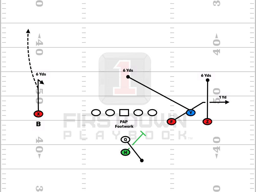 -PLANT OUTSIDE FOOT AT 6 YARDS AND SHOW NUMBERS TO THE QB.