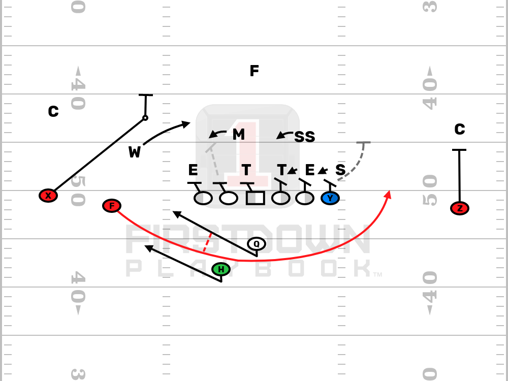 -REVERSE TO THE SLOT RECEIVER THAT COMES OFF OF THE SPEED OPTION WEAK.