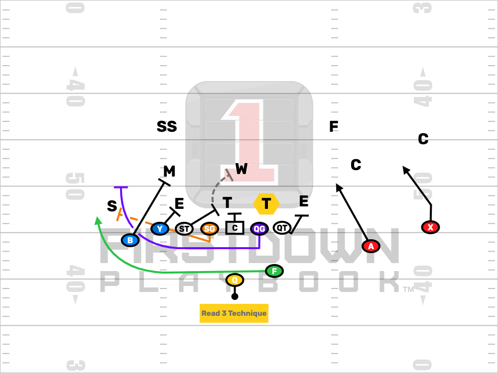 -THE QB WILL READ THE 3 TECHNIQUE TO THE QUICK SIDE.