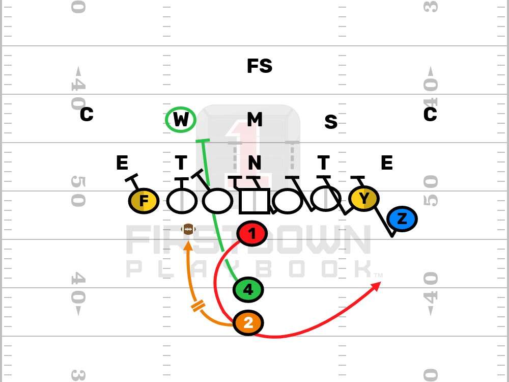 WEAK SIDE QUICK LEAD PLAY TO THE 2 BACK AT THE FIRST ILB PLAYSIDE.
